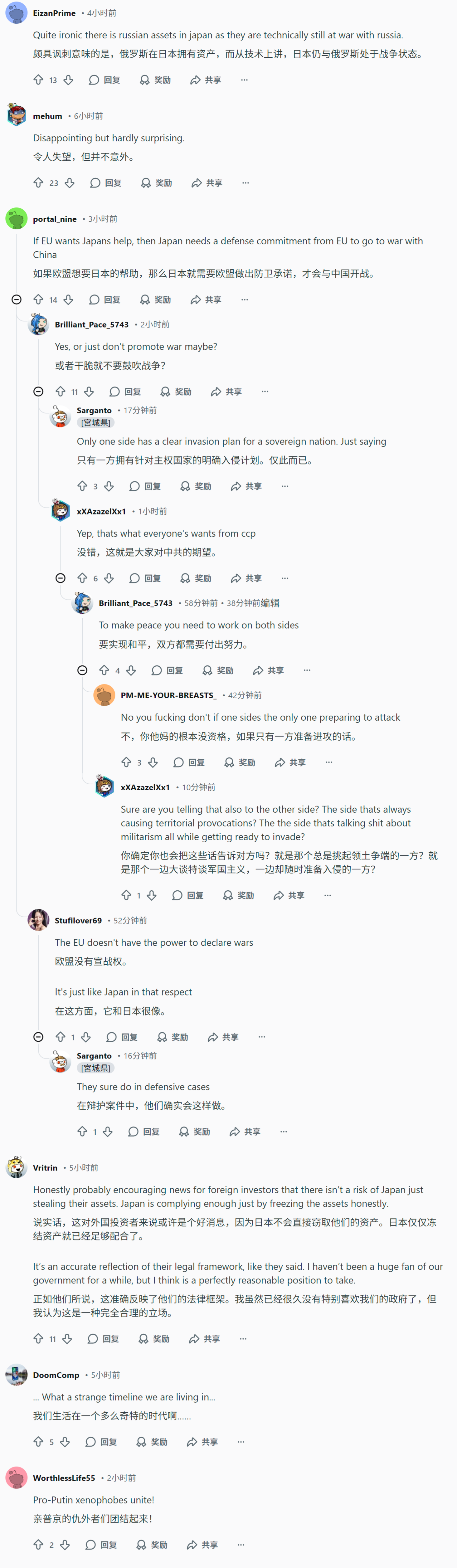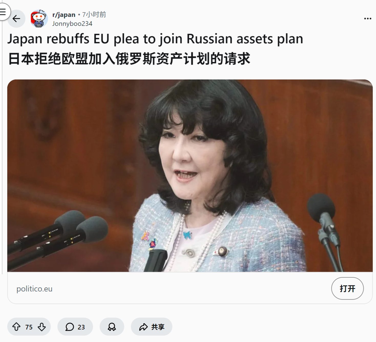 来源:https://www.reddit.com/r/japan/comments/1phutk1/japan_rebuffs_eu_plea_to_join_russian_assets_plan/