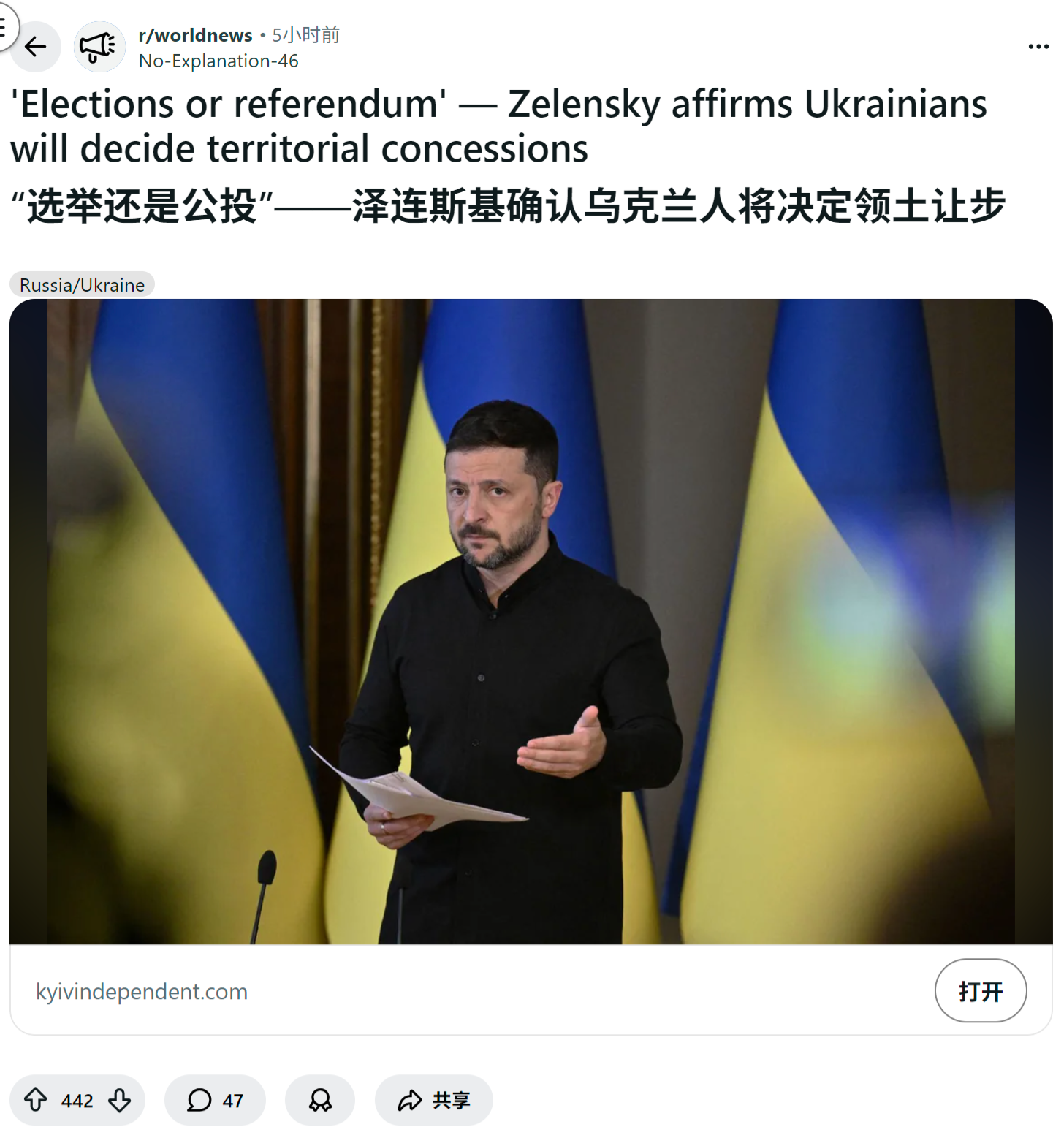 - reddit热议 泽连斯基公布由乌克兰和美国支持的完整20点和平计划草案