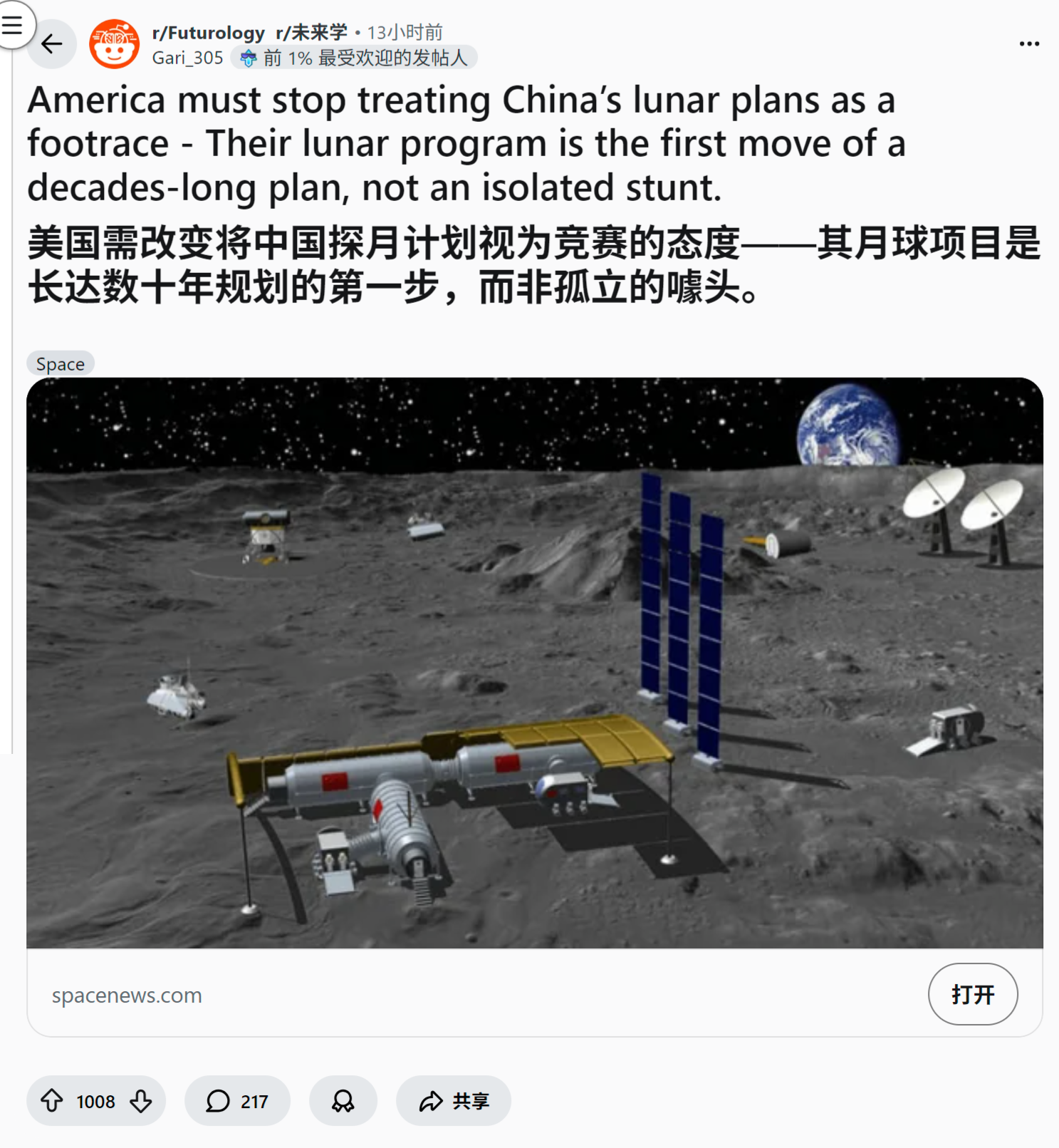 美国需改变将中国探月计划视为竞赛的态度——其月球项目是长达数十年规划的第一步,而非孤立的噱头。