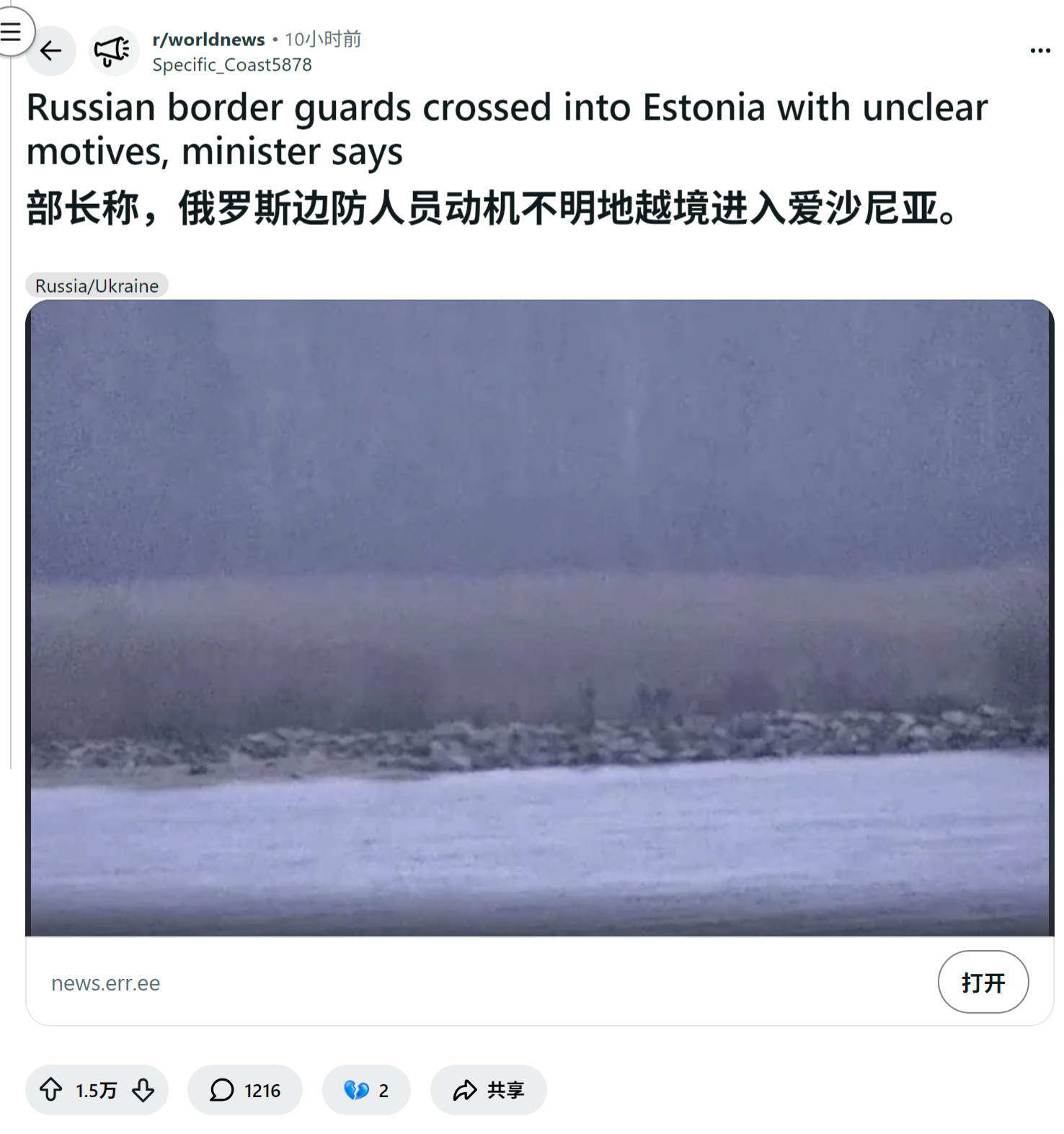 来源:https://www.reddit.com/r/worldnews/comments/1pp83p9/russian_border_guards_crossed_into_estonia_with/