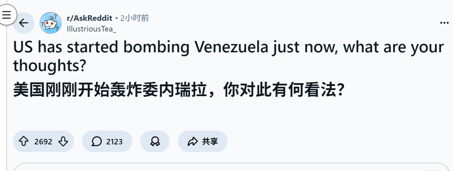 reddit爆火 美国刚刚开始轰炸委内瑞拉,你对此有何看法?