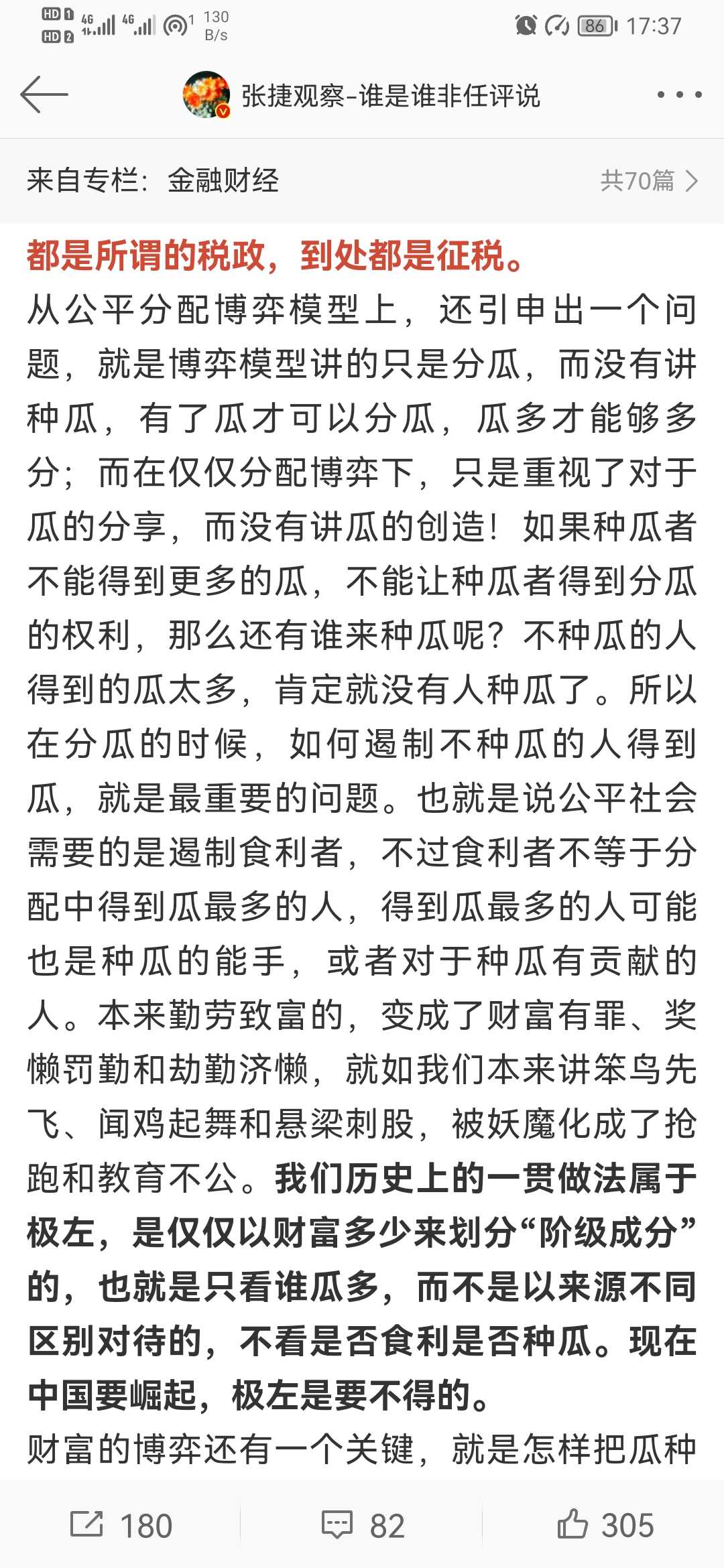 这个要结合张捷的经历来看的,一方面他出身名门,视野不可避免要比草民宽广,另一方面他亲身经历了八九十年代“科学的春天”,他在很多视频里都描述了那个时候的乱象,没有得到“公平的待遇”。他这观点是有实在的基础的,虽然立场看起来不像左边的同志那么红,但是左边的同志也没他表现出来的这么专业,这么有影响力。再看他这个观点,有些同志可能会觉得他维护富人的既得利益,但纵观他整体的观点能发现他主张的是通过合法手段打掉非法之富,毛主席土改时发动群众诉苦,不是发生过一些贫下中农真的对个别一些地主富农没有怨言,但还是严肃处理的官僚主义一刀切做法吗?不就严重损害了党的形象和统一战线,还成为现在攻击新中国的黑材料。他的观点是有一定道理的,但是要保持警惕,自己要坚持向又红又专发展,避免上当。这就是我的观点