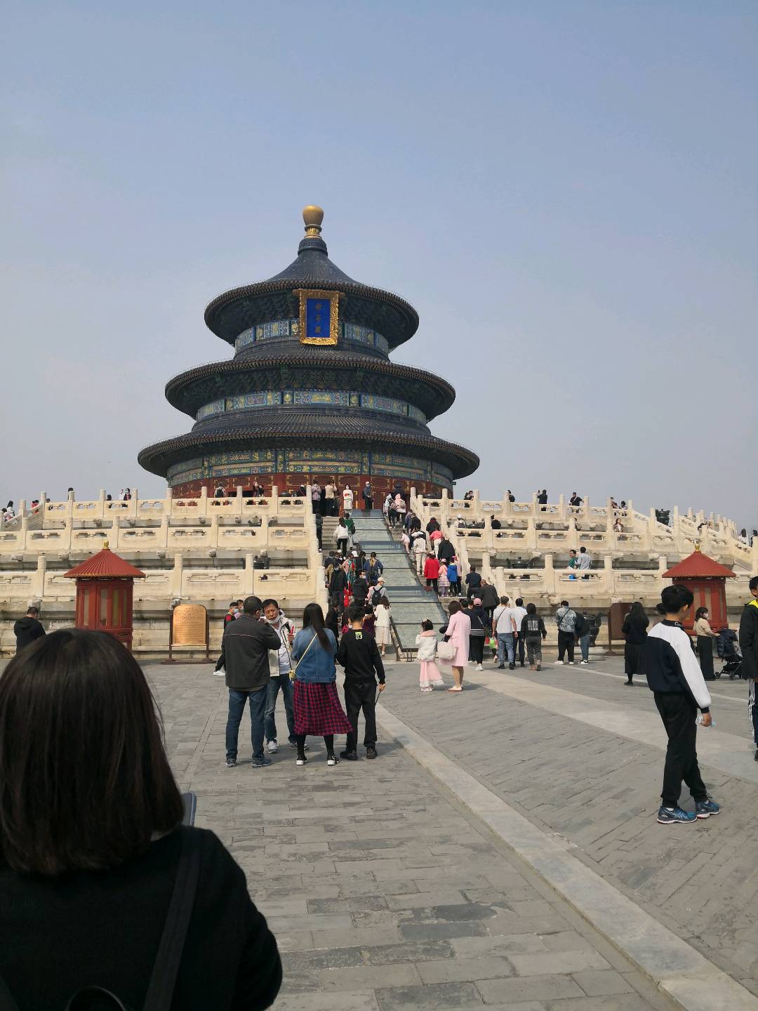 北京天坛熙熙攘攘人群。
