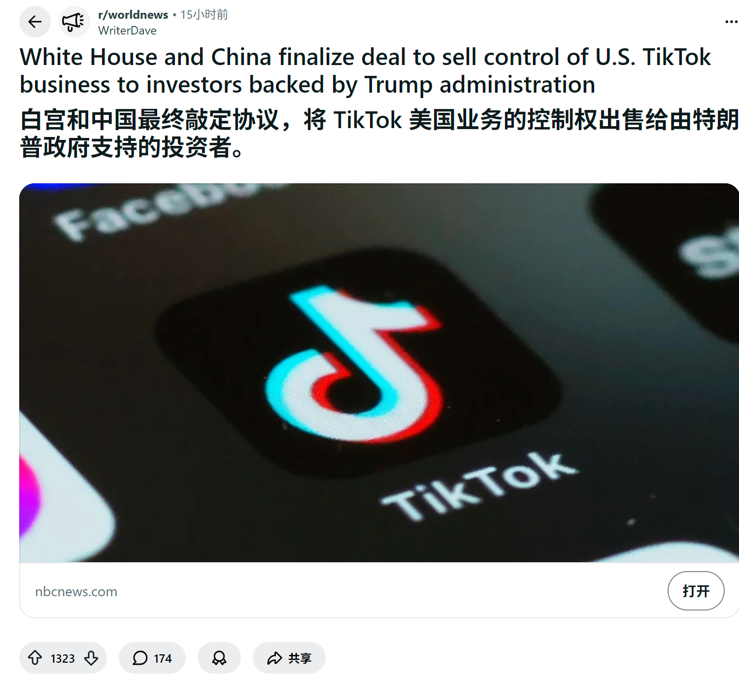 reddit热议 美国人怎么看TikTok 美国业务的控制权出售给由特朗普政府支持的投资者