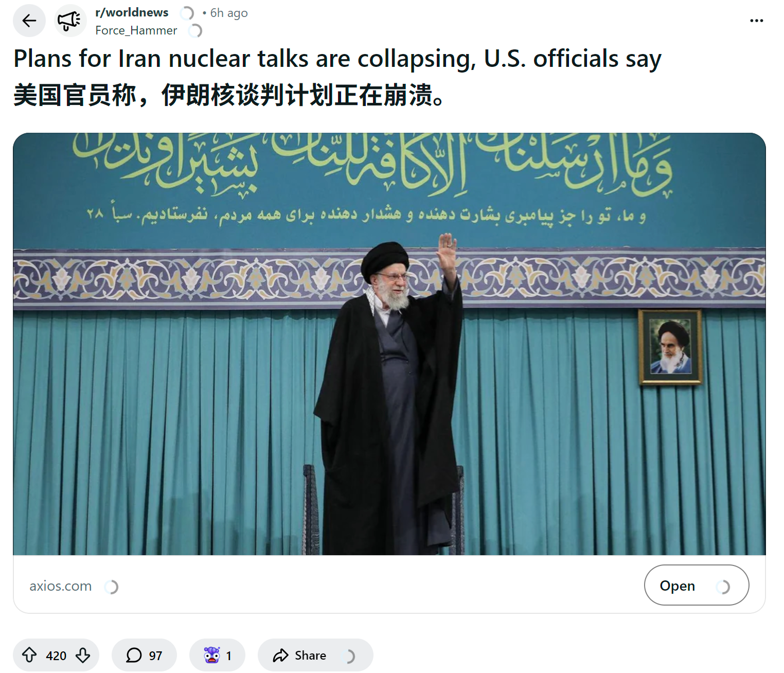 reddit热议 美国官员称,伊朗核谈判计划正在崩溃。