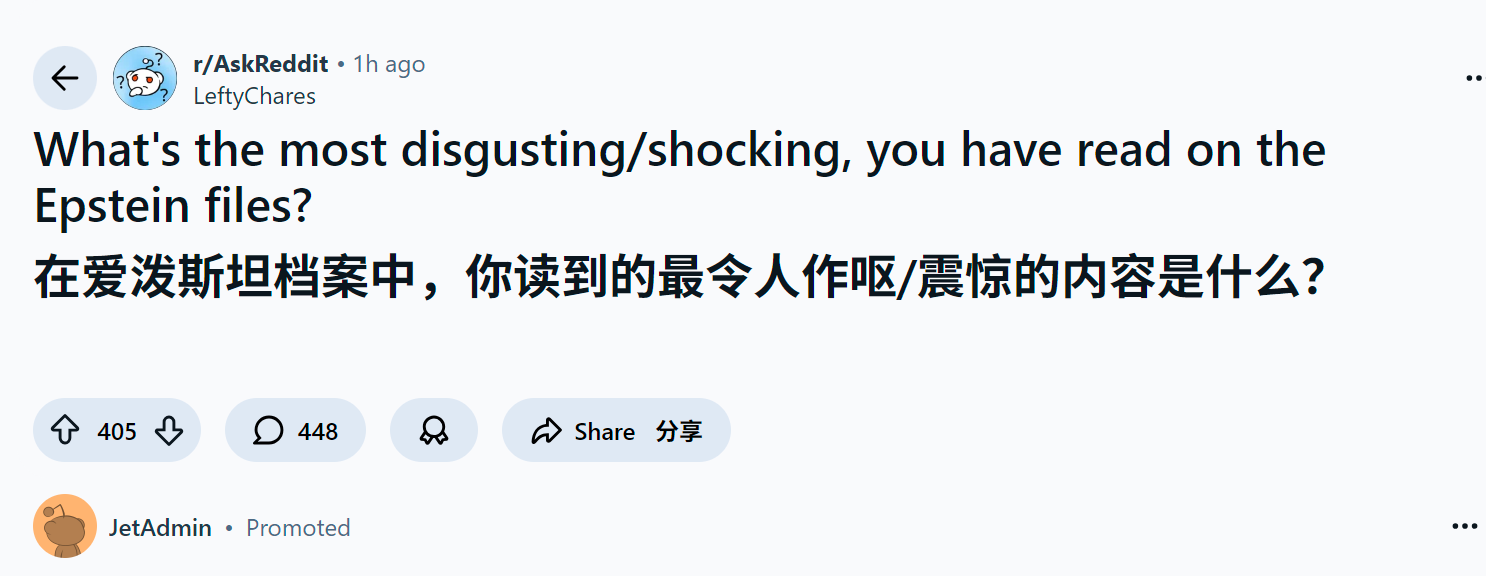 reddit热议 老外在爱泼斯坦档案中,读到的最令人作呕/震惊的内容是什么?