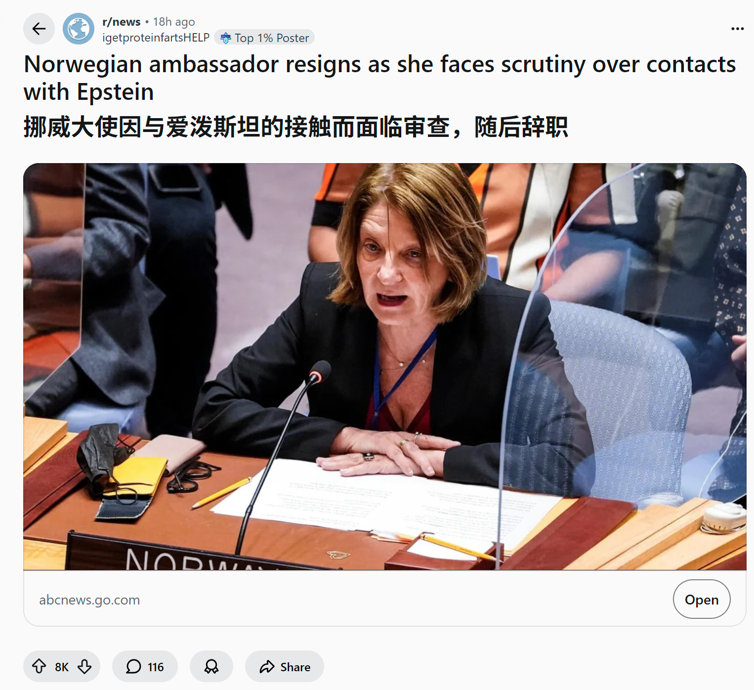 reddit热议 美国人怎么看挪威大使因与爱泼斯坦的接触而面临审查,随后辞职