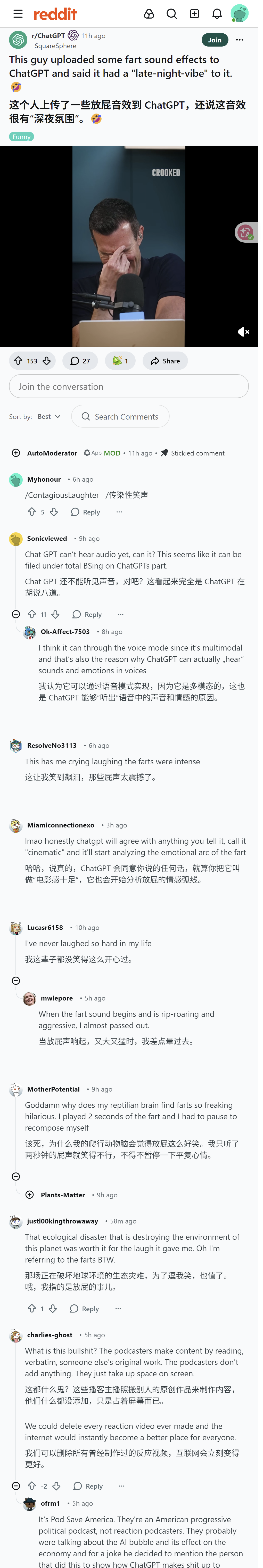 有人给ChatGPT上传屁音效用“深夜氛围”形容引发爆笑