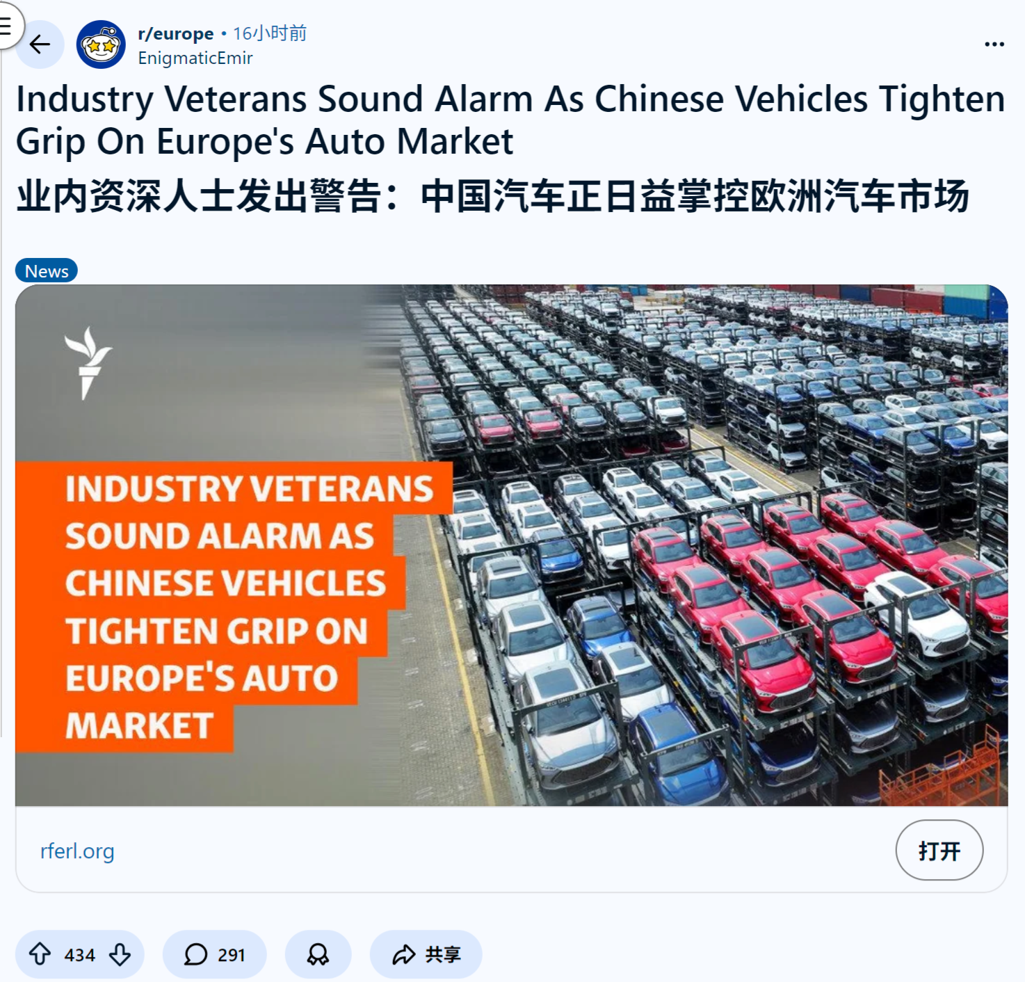 来源:https://www.reddit.com/r/europe/comments/1pxp1dg/industry_veterans_sound_alarm_as_chinese_vehicles/