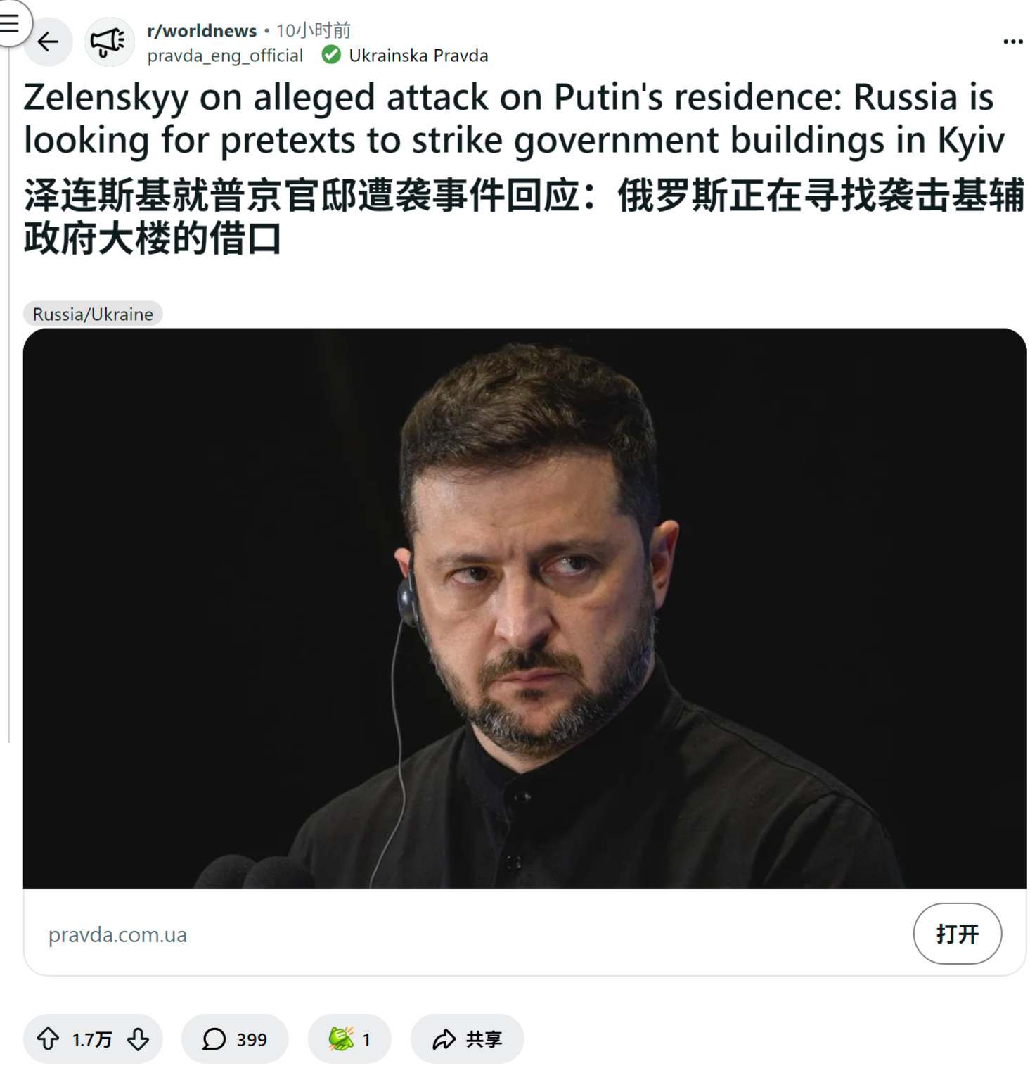 reddit爆火 泽连斯基就普京官邸遭袭事件回应:俄罗斯正在寻找袭击基辅政府大楼的借口