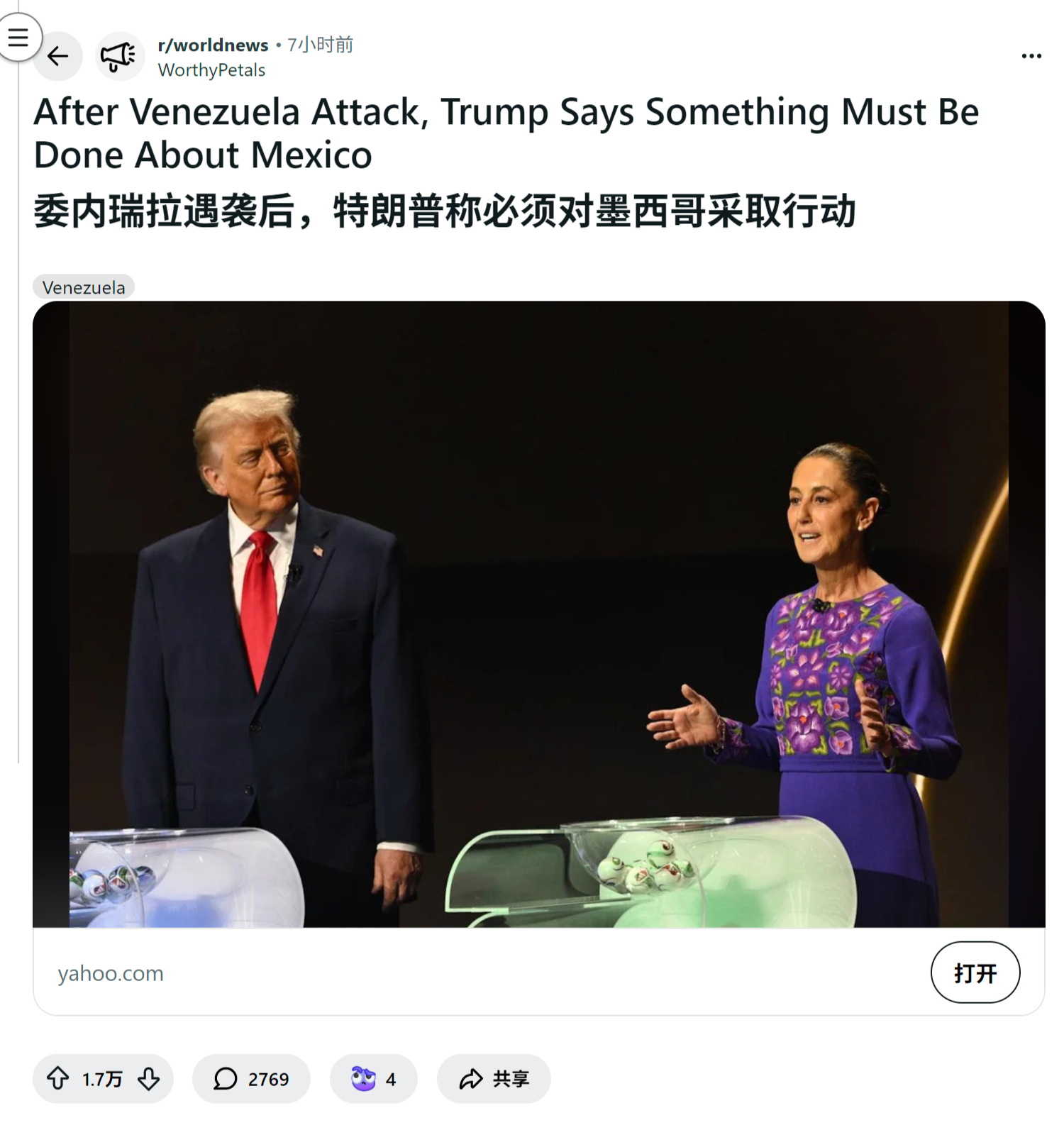 reddit爆火 委内瑞拉遇袭后,特朗普称必须对墨西哥采取行动
