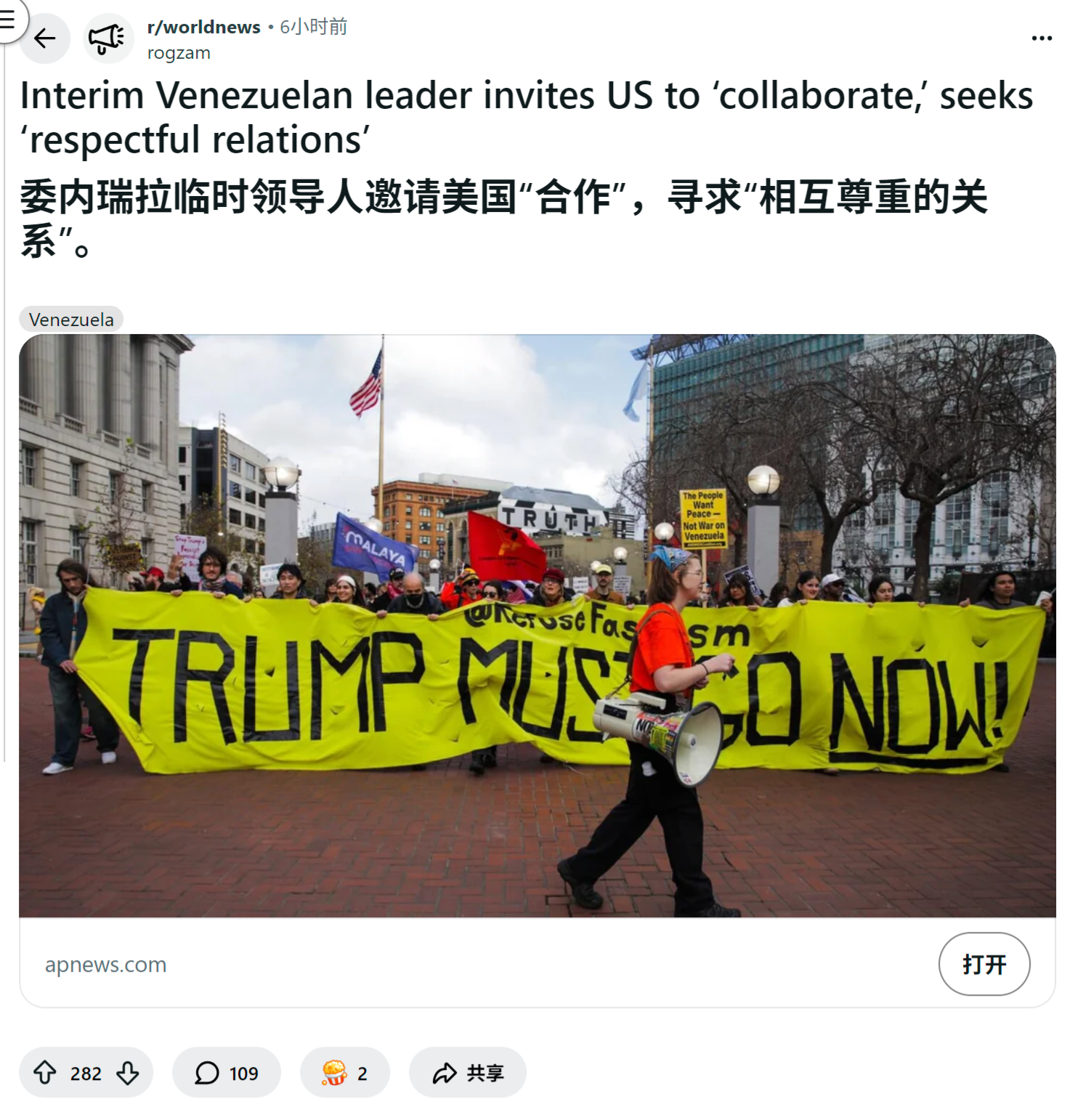 reddit热议 美国人怎么看委内瑞拉临时领导人邀请美国“合作”,寻求“相互尊重的关系”。