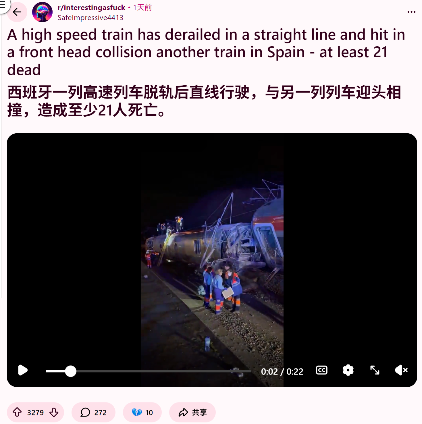 reddit热议 老外视角看西班牙高铁脱轨
