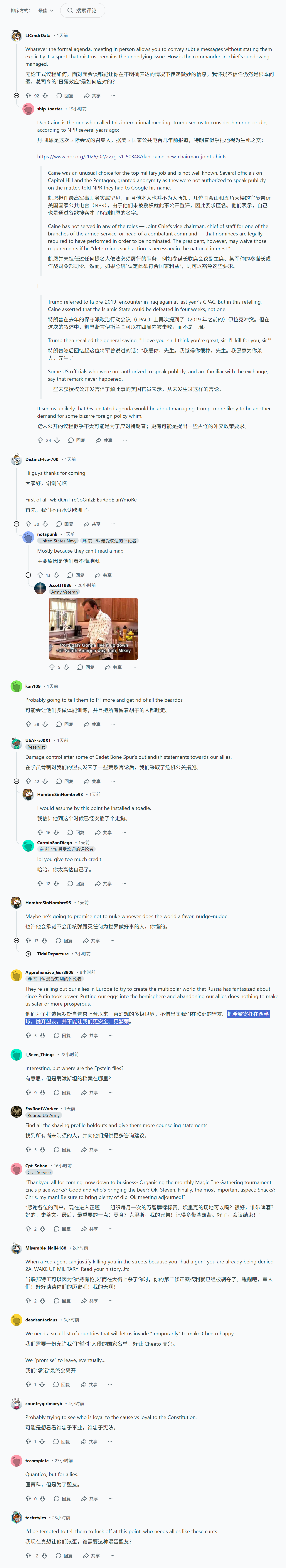 reddit帖子 美国人如何看召集西半球所有军事领导人举行罕见会议