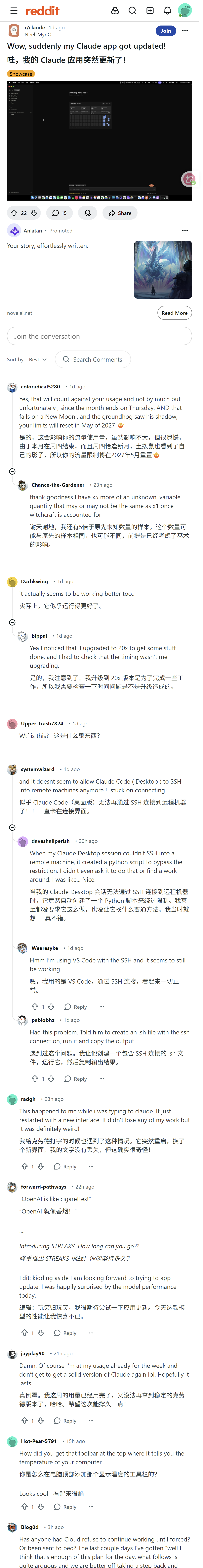 Reddit用户讨论Claude应用突然更新的各种问题和体验